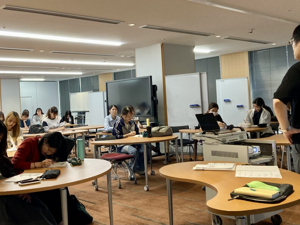 受講生は二年生で、「心理学についてはいろいろ勉強してきたけれど、それを実際にどのように実社会で活かせばよいかまだわからない」という学生たちです。この科目を担当するのは三菱電機株式会社で実際にプロジェクトマネジメントを業務としておられる実務家教員の菅谷先生です。会社での実体験も踏まえながら、「会社でプロジェクトを運営する」とはどのようなことかについて講義していただいています。